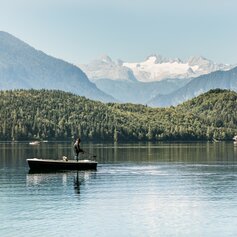 The tour passes through the villages of Reitern, Untersee, and Obersee, following the bike signs and the hiking and biking trail to Hallstatt train station. The East Bank Bike Trail then continues to Obertraun. Passing the beach, the trail continues to Gasthof Koppenrast. Here, turn left onto the Koppental Bike Trail. After the “old railway tunnel,” turn right up to the Koppen-Landesstraße road and follow it to Bad Aussee train station. From there, the trail leads back to the starting point in the town center.